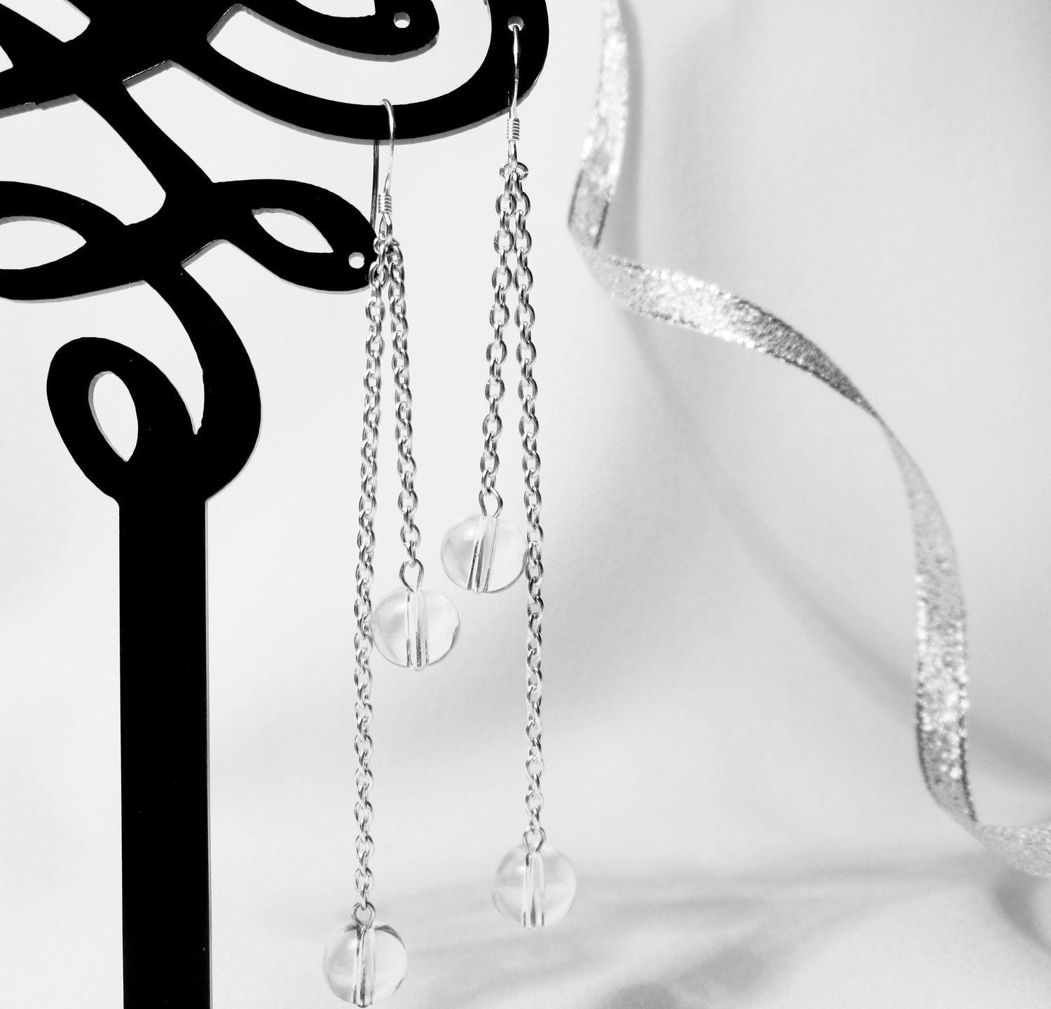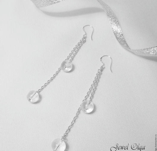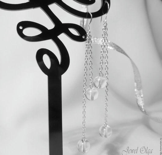 Длинные серьги на цепочке "Изысканная" с горным хрусталем. Легкие, нежные и невесомые.