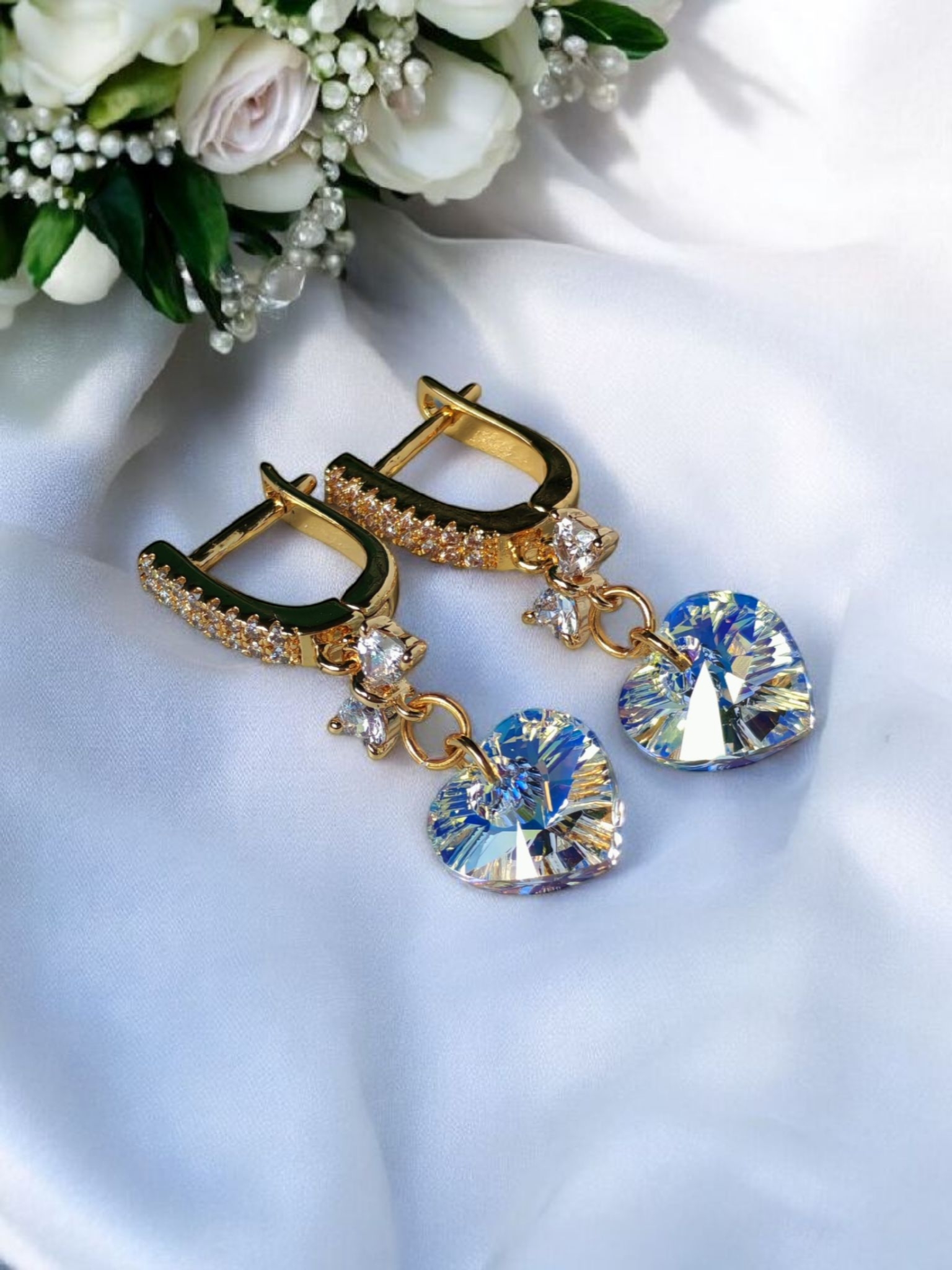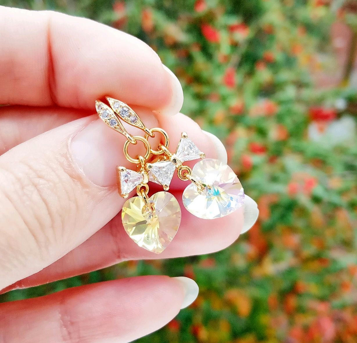 Материалы: кристаллы от Swarovski, латунь, позолота 24-к, инкрустация фианитами.